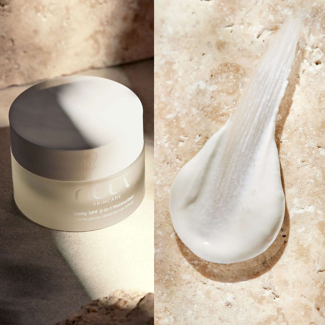 Infine, come ultimo step, la Daily SPF 2-in-1 Moisturizer garantisce un'alta protezione dai raggi UV, mentre idrata e lenisce efficacemente la pelle grazie alla sua formula arricchita con esosomi antiossidanti e lenitivi, squalano, aloe e vitamina E. Ottima anche come base make-up.