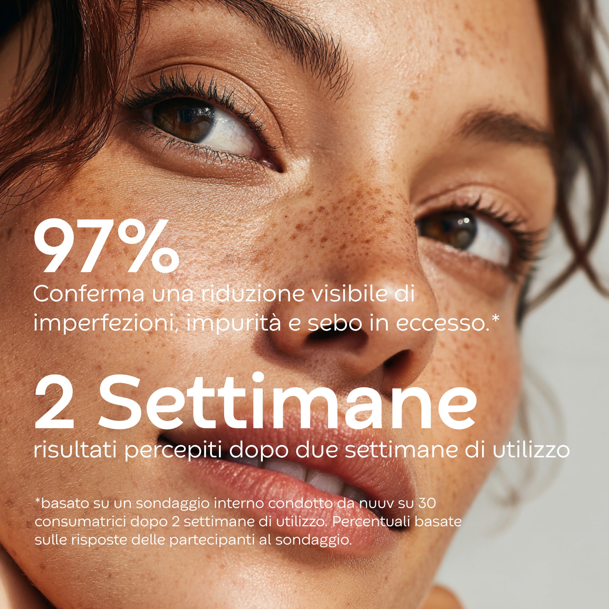 La sua formula, a base di tensioattivi delicati di origine vegetale, unisce estratti purificanti e ingredienti funzionali per una detersione completa che rimuove impurità, sebo in eccesso e residui di trucco, rispettando al tempo stesso l’equilibrio naturale della pelle.