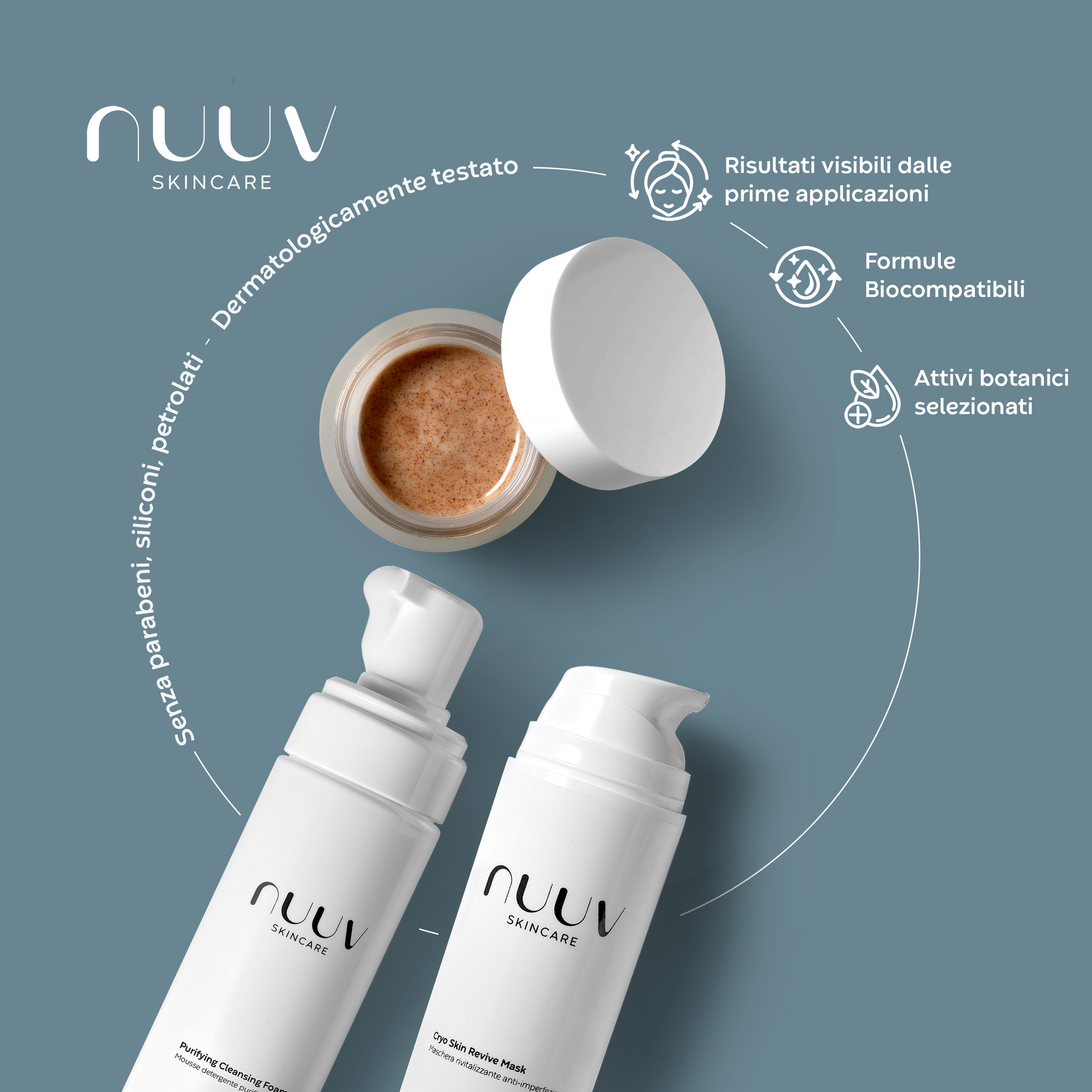 Purifying Cleansing Foam – mousse purificante e riequilibrante che libera i pori e riduce il sebo in eccesso, lasciando la pelle fresca e opacizzata.